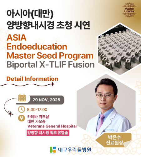 대구우리들 병원입니다. 본원은 한국의 척추 내시경 치료 기술을 세계로 전파하며 국제 의료 협력의 가치를 실현하고 있는데요. 최근 파키스탄 미안 무하메드 트러스트 병원 (Mian Muhammad Trust Hospital) 소속의 신경외과 전문의 미안 어와이스(Mian Awais) 교수가 대구우리들병원을 찾아 최소 침습 척추 내시경 수술 연수 프로그램에 참여하였습니다. 이번 연수 과정은 단순한 이론 강의에 그치는 것이 아니라 실제 임상 적용을 목표로 설계 되었는데요. 어와이스 선생님은 한달간 대구에 머무시며 한방향·양방향 척추 내시경 수술법과 이에 대한 이론 교육은 물론, 척추 모형을 활용한 실습, 수술 참관 까지 전 과정을 이수하였습니다. 특히 우리들병원의 반복적이고 정밀한 술기 훈련을 강조화는 교육 방식은 해외 의료진에게도 높은 신뢰를 받고 있다고 하는데요. 연수를 받은 어와이스 교수는 한국의 선진 의료 기술을 파키스탄 환자분들에게 적용하여 더 많은 치료 기회를 제공하고 싶다고 이야기 하였니다. 이러한 연수 프로그램을 운영하신 박찬홍 병원장님께서는 척추 내시경 수술은 환자의 안전을 위해서 반드시 반복 훈련이 필요하다고 이야기 하셨는데요. 이번에 진행한 연수 프로그램처럼 의료 혜택을 받지 못해 고통받는 해외의 환자분들에게 한국의 최소상처 치료술이 새로운 희망이 되기를 바란다고 전했니다. 대구우리들병원에서는 앞으로도 세계 의료 현장에 기여하며 한국형 척추 치료 기술의 위상을 높이기 위해 최선을 다하도록 하겠습니다.