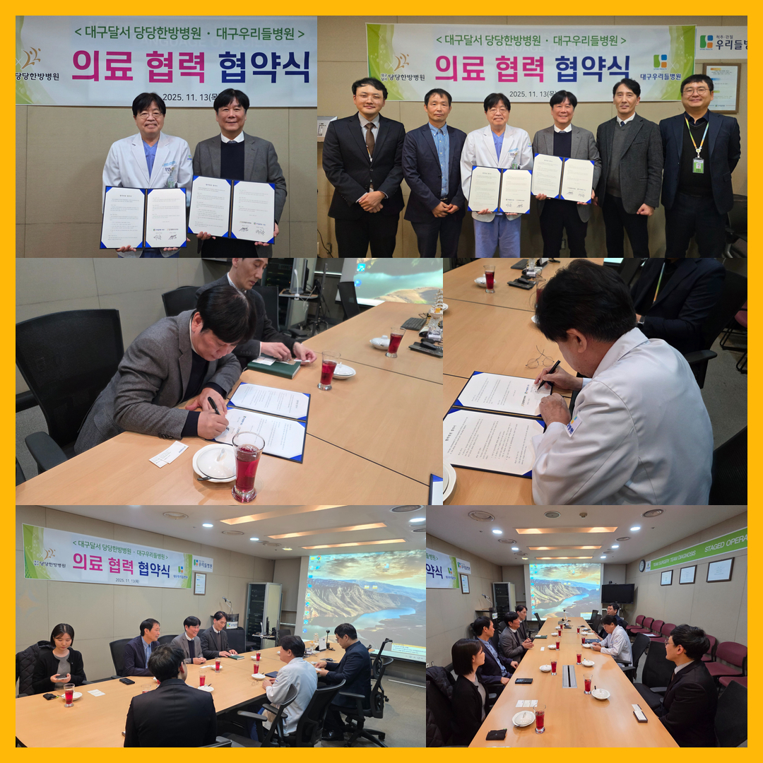 지난 11월 13일 본원에서는 대구달서당당한방병원과 협력 진료 협약식(MOU)을 진행하였는데요.