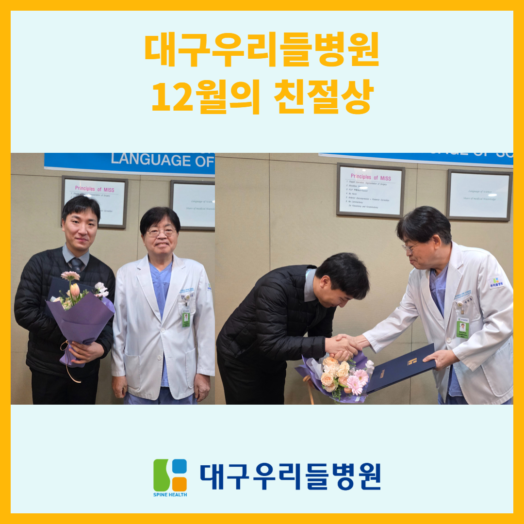 앞으로도 친절상 시상을 통해 서로를 격려하고, 환자 중심의 문화를 더욱 강화할 수 있도록 노력하겠습니다.